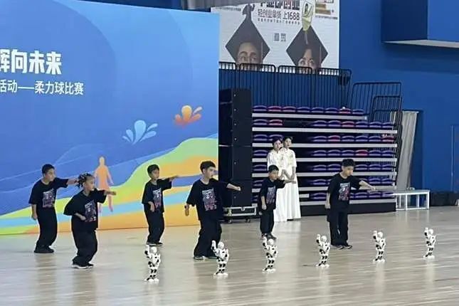 开幕式在科技炫酷与人文古韵的交响中开启。舞台上,“人机共舞”的街舞表演率先点燃热情——小朋友灵动的身影与机器人精准的舞步交相辉映,带来未来感十足的视觉冲击;紧随其后,太极拳、太极刀、太极剑融合而成的太极表演行云流水,将“以柔克刚、借力打力”的东方智慧演绎得淋漓尽致,清晰勾勒出柔力球运动与千年太极运动的同源根脉与当代传承。